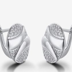Real 925 Sterling Silver Earring 0.6” Micro Pave Clear Zircon Clip Earrings [EAR71]$32Everett, WA