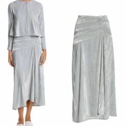 Vince Ruched Velvet Paneled Midi Skirt Pale Sea Glass Size 8 NWT $75Kirkland, WA