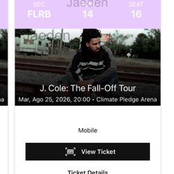 J Cole Floor Tickets$2,150Bothell, WA