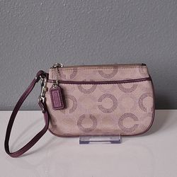 Coach Signature C Dot Op Art Wristlet Wallet Khaki Purple Leather Trim $25Mukilteo, WA