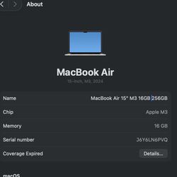 MacBook Air 15" M3 16GB |256GB$700Issaquah, WA