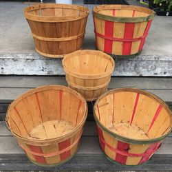 Lot of 5 Vintage Wooden Bushel Apple Peach Fruit Vegetable Baskets$80Steilacoom, Washington