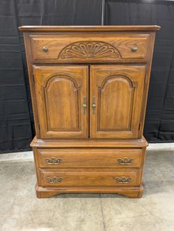 Classic Wood Tall Chest with Carved Detail and Cabinet Doors$650Renton, WA