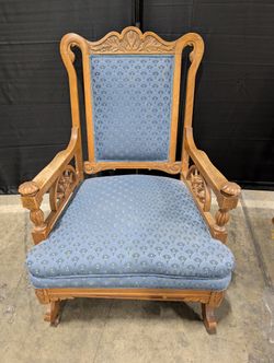Carved Wood Armchair with Blue Patterned Upholstery$100Renton, WA