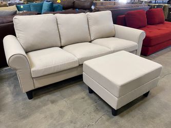IKEA Gammalbyn Ivory Fabric 3 Seat Sofa with Ottoman and Black Legs$199Seatac, WA
