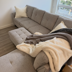 Gray linen sectional couch and ottoman$700Seattle, WA