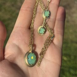 Natural Chrysoprase Earrings & Necklace Set – New (Open Box), 18K Gold Plated, Made in Sweden $55Renton, WA