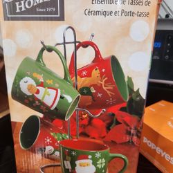 Gibson Home; Santa's smile.Ceramic mug set with rack. New$20Tacoma, WA