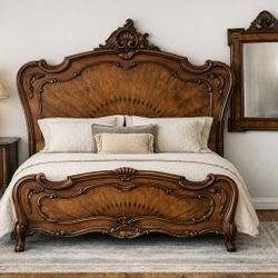 Antique French Louis XV / Rococo Revival Walnut Full‑Size Bed with Coordinating Mirror (late 1800’s)$2,100Bellevue, WA