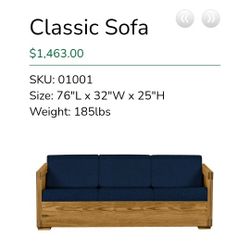 Solid Wood Couch Blue Cushions$300Lacey, WA