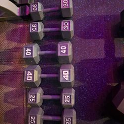 Hex dumbbells 8’s - 25’s 5 sets of weights w/ dumbells weight rack$210Seattle, WA