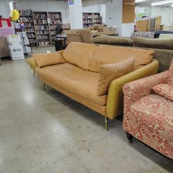 Cream Leather Fabric Sofa & Loveseat Set with Gold Trim – Now on Sale$1,750Federal Way, WA