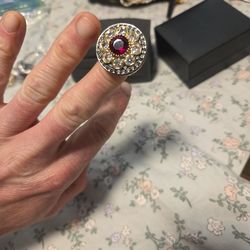 Gold Tone Statement Ring w/ Red Center Stone – Designer Style – Size ?$35Seattle, WA
