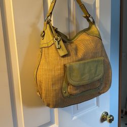 Lg Straw And Green Leather Fossil Hobo Bag$45Tacoma, WA