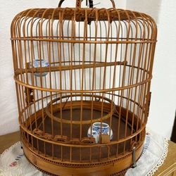Vintage Asian Bamboo Bird Cage Blue Floral Ceramic Feeder/Water Bowls$200Tacoma, WA