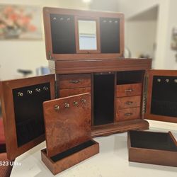 Wooden Jewelry Box Brown Black Mirror Multiple Drawers Velvet Lined Organizer$12Lacey, WA