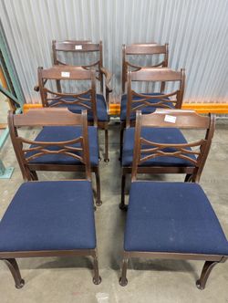 SET Of Seven Dark Wood Armchair with Navy Upholstery$80Renton, WA