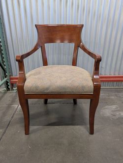Traditional Brown Wood Armchair with Patterned Upholstered Seat$30Renton, WA