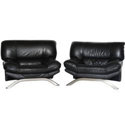 2 Piece Set of Norwegian Mid Century Modern Ekornes Manhattan Black Leather Sofas $1,245Bellevue, WA