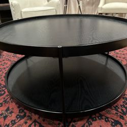 Modern Round Side/End/Coffee Table With The Black Wood Top And Bottom Shelf, Matte Black Metal Base 26” In Diameter H18”$25Bellevue, WA
