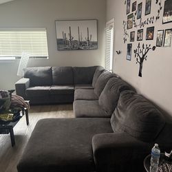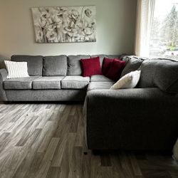 Gray linen sectional couch and ottoman$700Tacoma, WA