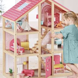 Tiny Land Wooden Dollhouse for Girls - 6 Rooms Wooden Doll House, DIY Pretend Doll House with 31Pcs$75Auburn, WA