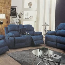 Blue Reclining Couch 3-Pc Set — Sofa • Loveseat • Chair$1,200Kent, WA