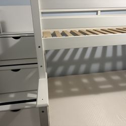 Two layered white bed twin sized. One white table with shelf’s.$700Kent, WA