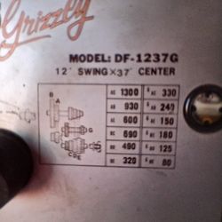 Grizzly DF-1236G Metal Laith$3,500Seattle, WA