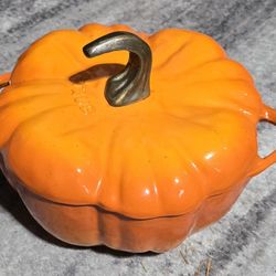 Staub rare older model orange ombré pumpkin cast iron Dutch oven. With brass stem lid.$150Tacoma, WA