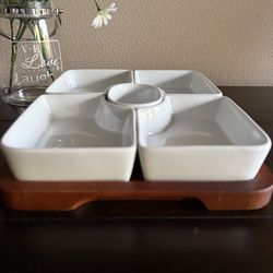 6piece Appetizer serveware w/wood tray 12"x9.5" in excellent new condition$18Tacoma, WA