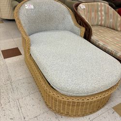 Wicker Chaise Lounge w/ Blue & Cream Patterned Cushion$150Spanaway, WA