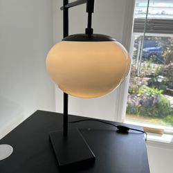 Pottery Barn Callahan Milk Glass Table Lamp 22” EUC Black Modern Globe Retired$200Lacey, WA