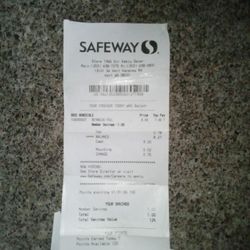 Safeway Cash Receipt $1Kent, WA