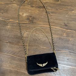 Zadig & Voltaire Rock Black Suede Clutch Crossbody Gold Wing Chain Bag $200Tacoma, WA