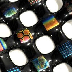 Modern Style Handcrafted Fused Dichroic Glass Open Lattice Art Puece Dish Artist Signed BV Approx 6” x 4.25” $25Tacoma, WA