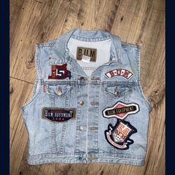 VINTAGE BUM Equipment womens Varsity Denim Vest 90s Logo Denim Coat$25Puyallup, WA
