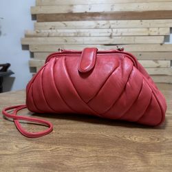 NICOLE Vintage Red Pleated Leather Structured Frame Magnetic Closure Clutch Bag$29Covington, WA