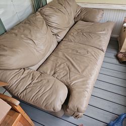 Brown-Beige Leather Couch Decent Shape And Sturdy$20Orting, WA