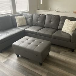 Gray Leather Sectional Couch And Ottoman$700Kent, WA
