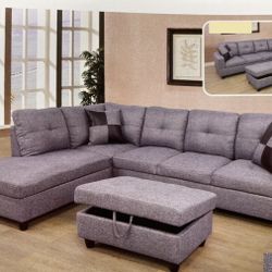 Brand New Gray Leather Sectional With Storage Ottoman $715Puyallup, WA