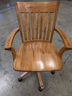 Vintage Oak Wood Slat Back Swivel Office Chair with Casters$55Renton, WA