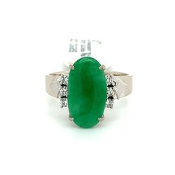 16kt White Gold Oval Jade Ring With 6 Diamonds 6.30grams Size 7 1/2 148458 1$720Federal Way, WA