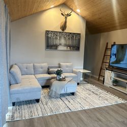 Light Gray Linen Sectional Couch And Ottoman$700Renton, WA