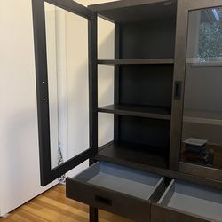 Black Wood Tall Storage Cabinet with Glass Panel Door and Three Drawers$60Renton, WA