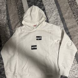 White Supreme Comme des Garcons SHIRT split box logo hoodie . Size S(measurements provided in pictures) Worn once, no flaws beautiful condition 10/10 $180Auburn, WA