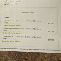 Eagles Concert Tickets At The Sphere February 28$500Mount Vernon, WA