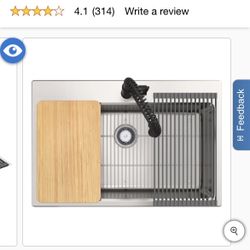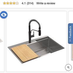 Open box to show, Kohler Provo 33" DualMount Singlebowl Workstation Kitchen Sink Kit, black faucet.$200Everett, WA