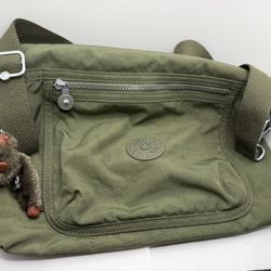 Kipling Olive Green Nylon Crossbody Shoulder Bag Adjustable Strap Monkey Charm$25Lynnwood, WA
