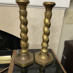 Vintage Spiral Brass Candlestick Holders Pair Heavy Base 12.5” T$45Stanwood, WA